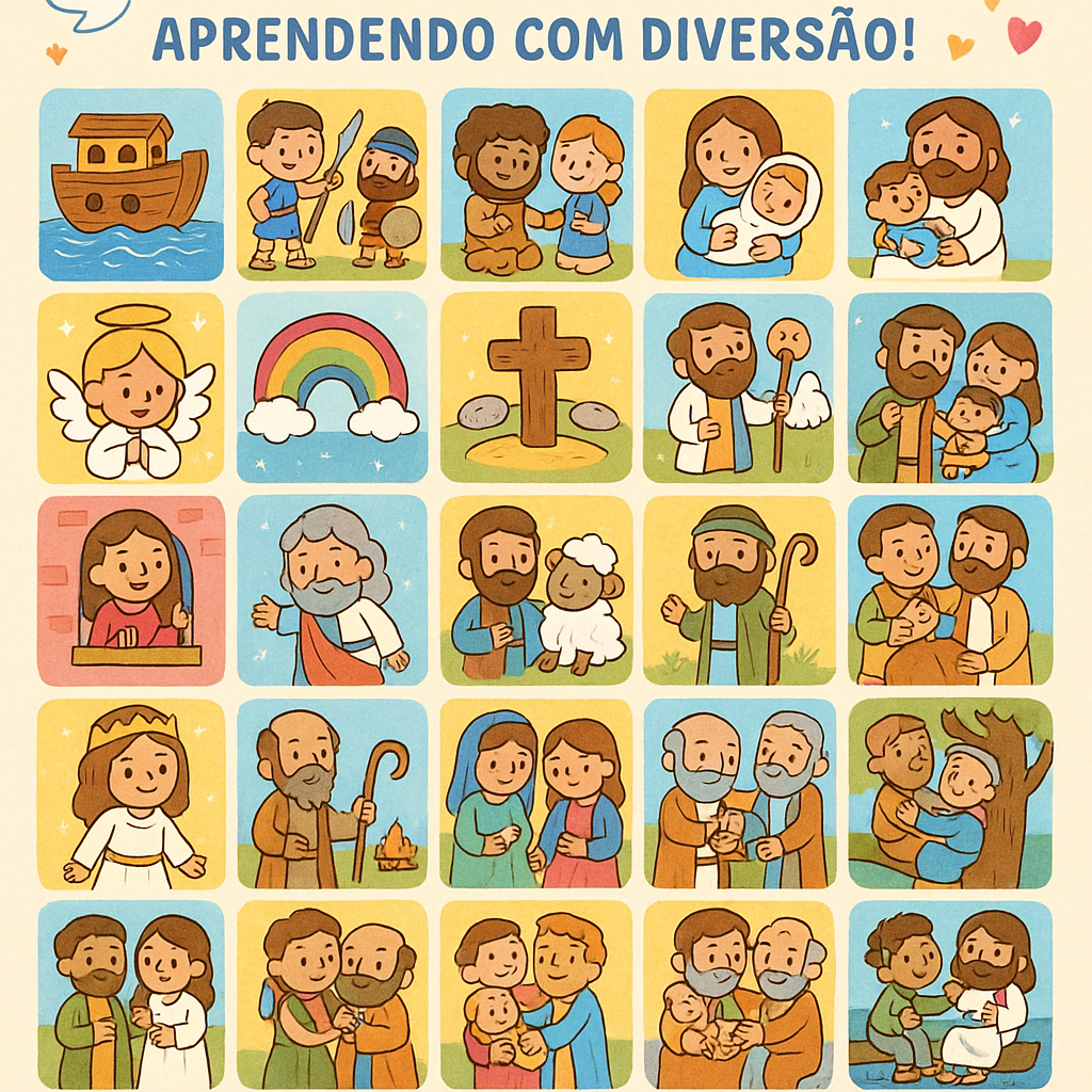 Páginas para imprimir com desenhos bíblicos, desafios, labirintos e jogos que ajudam a criança a fixar o que aprendeu de forma divertida. Ideal para usar em casa, na sala de aula ou no culto kids — ensinando valores enquanto as crianças brincam e se expressam.